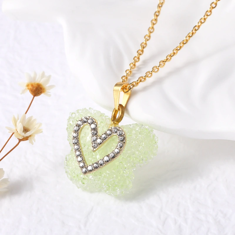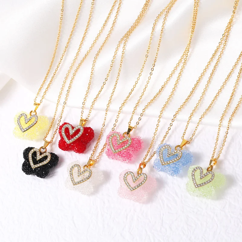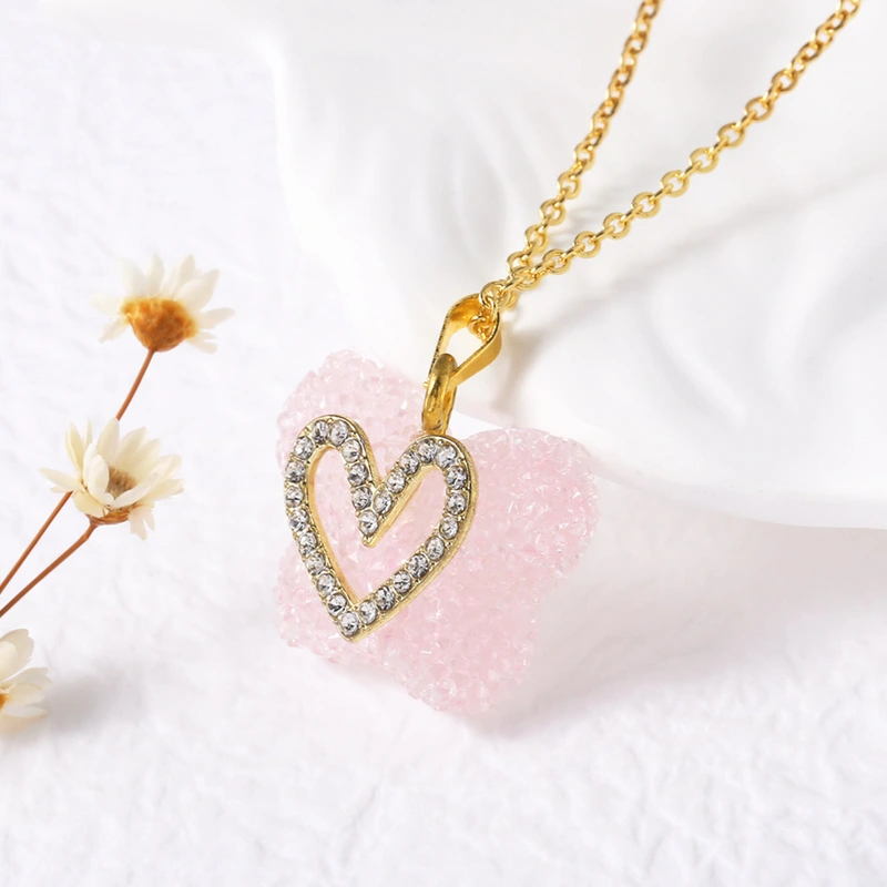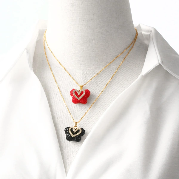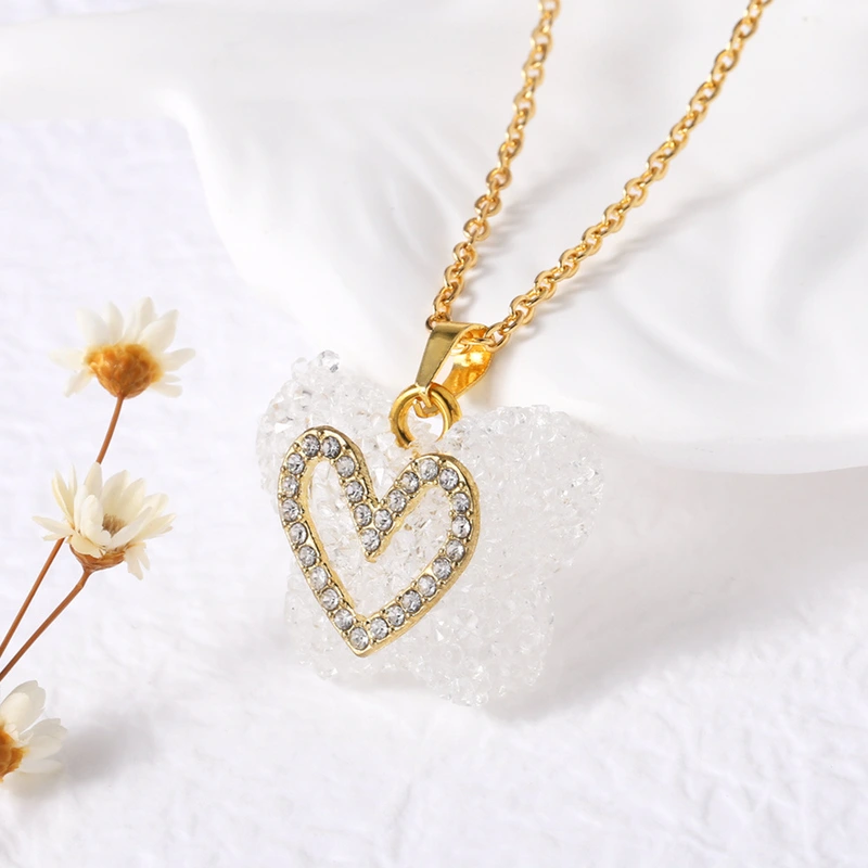 قلادة نسائية مطلية بالذهب على شكل قلب على شكل فراشة ملونة للبيع بالجملة من المجوهرات nkb560