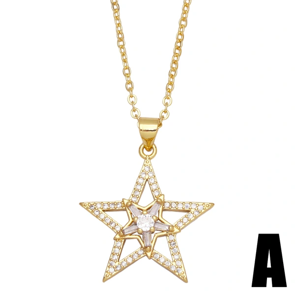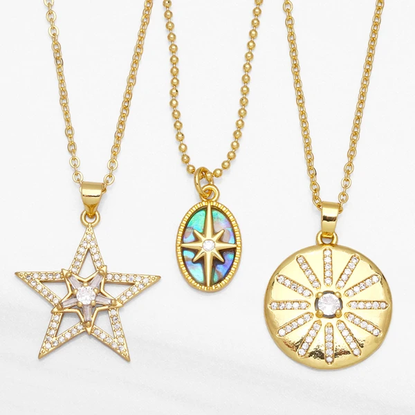 قلادة نسائية من الزركون بتصميم نجمة هندسية دائرية بتخفيضات أوروبية وأمريكية، سلسلة ترقوة، للبيع بالجملة، NKB005