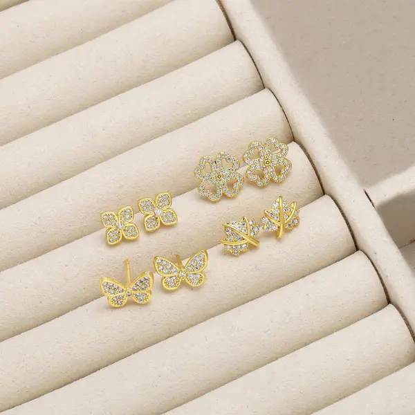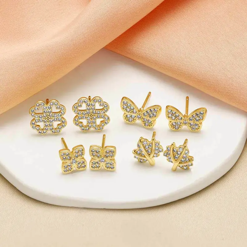 كأقراط فراشة شعبية من المجوهرات النسائية المطلية بالنحاس من الذهب عيار 18 قيراطًا وأقراط على شكل برسيم بأربع أوراق من العصر 254