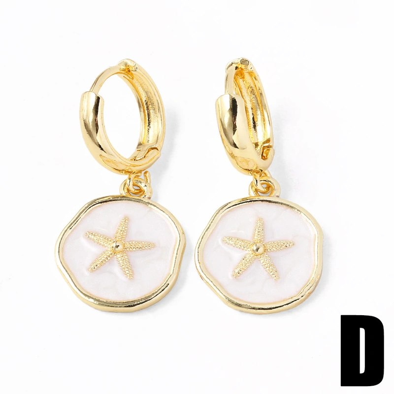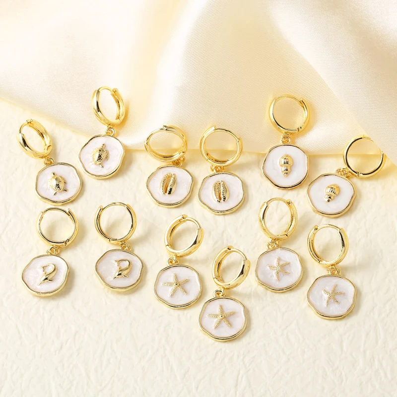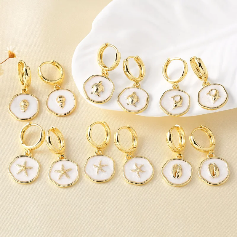 كحلي أوروبية وأمريكية جديدة مرصعة بالصدف على شكل سلحفاة بحرية على شكل نجم البحر وأقراط وأقراط erq25