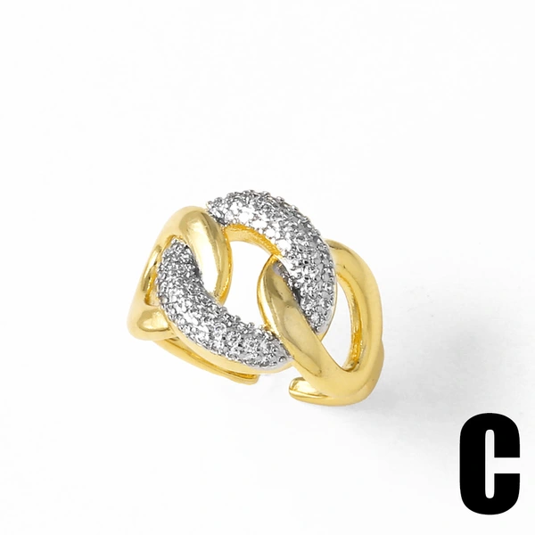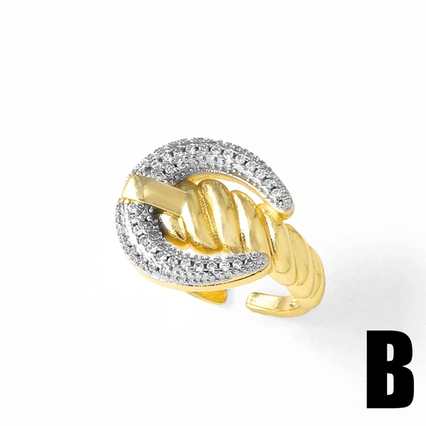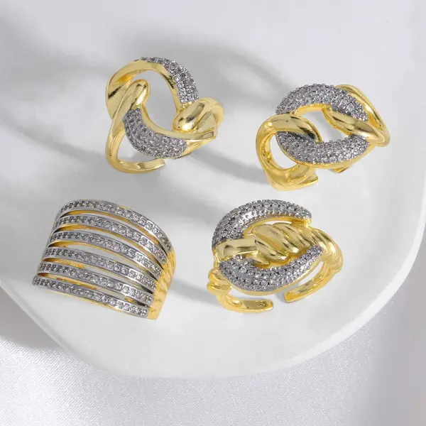 كخاتم مجوهرات مطلي بالذهب بتصميم متقاطع ملتوي ثنائي اللون من الزركون الكامل بتصميم أوروبي وأمريكية RIS10