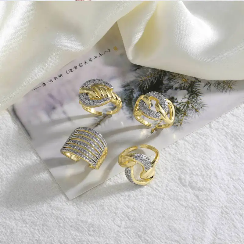 خاتم سماء مرصعة بالنجوم بتصميم نيتش نسائي، خاتم زوجين مليئ بالزركون، خاتم أنثوي عصري رائع بإصبع السبابة
