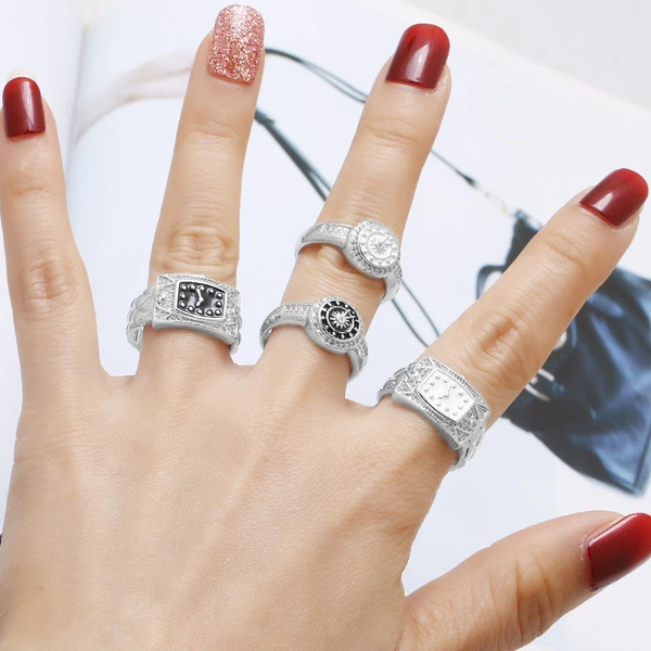 خاتم زهرة ميمونة محفورة بشكل كلاسيكي بتصميم عريض من خاتم مياو على الطراز العرقي من يونان، مجوهرات للرجال والنساء