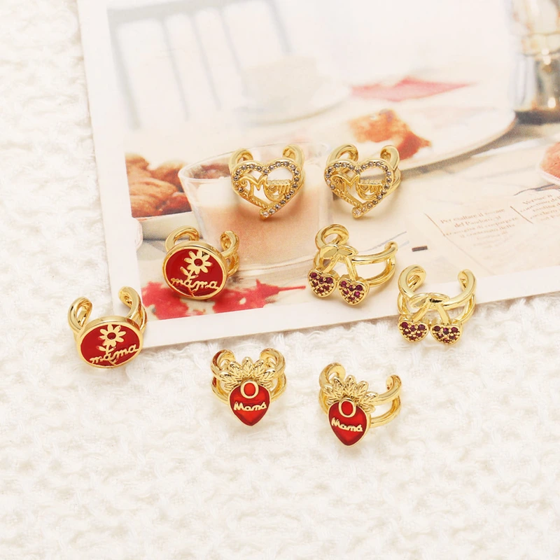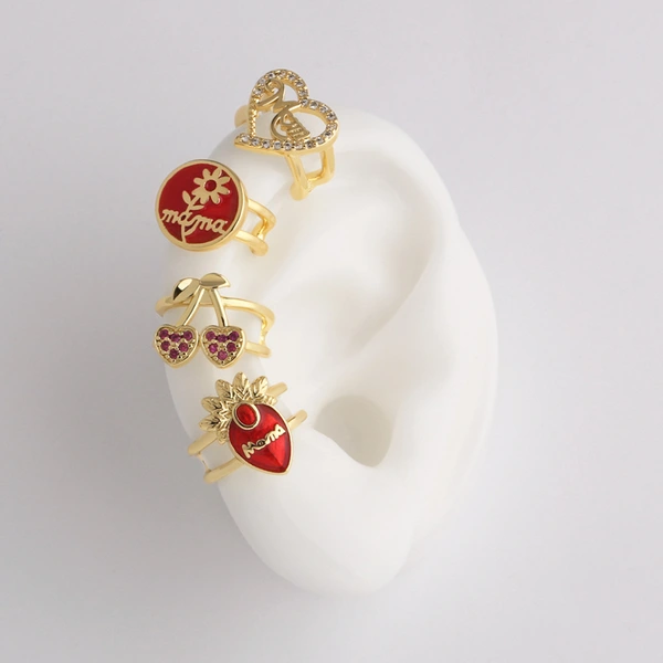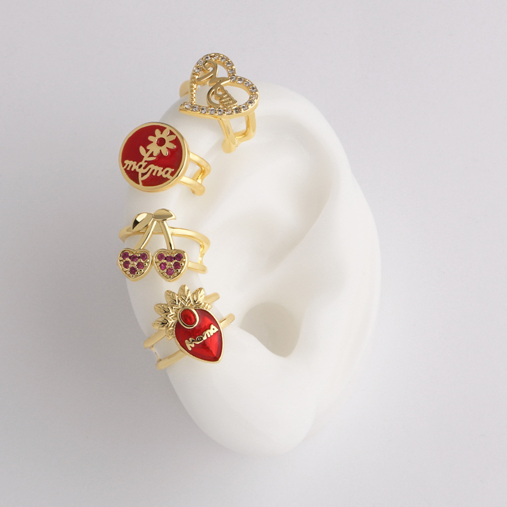 كقطعة مجوهرات أوروبية وأمريكية على شكل قطرة زيت فاكهة الكرز الأحمر بدون ثقب للأذن مشبك أذن مرصع بالزركون era398