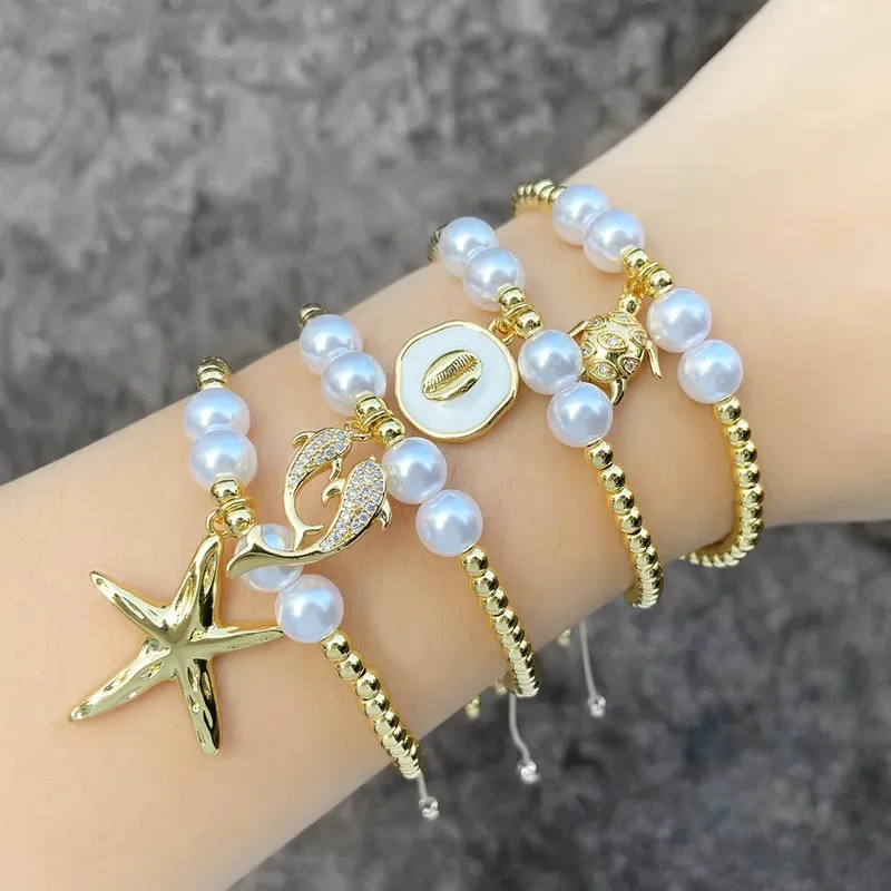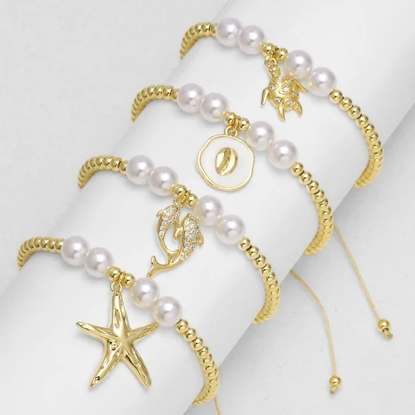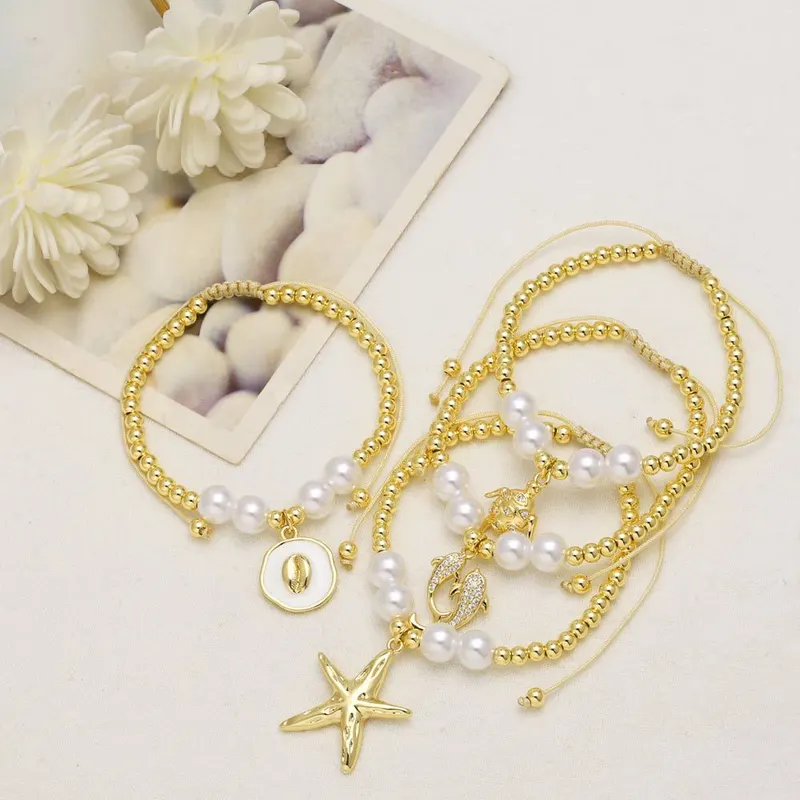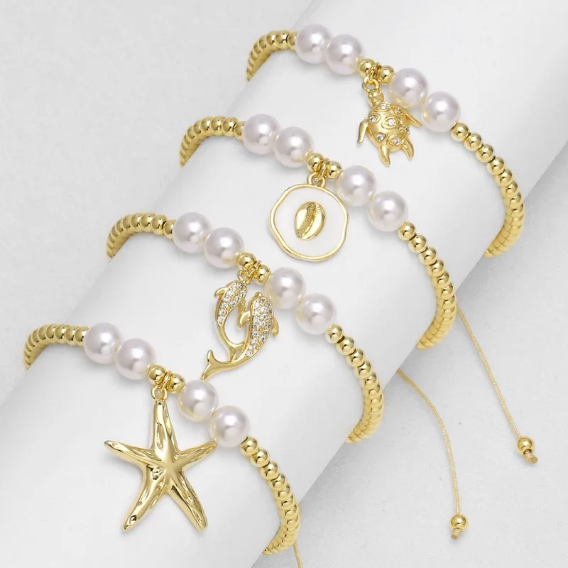 كقطعة مجوهرات الأكثر مبيعًا سوار قلادة سلحفاة نجم البحر المحيط اللؤلؤي للنساء مطلي بالذهب bre38