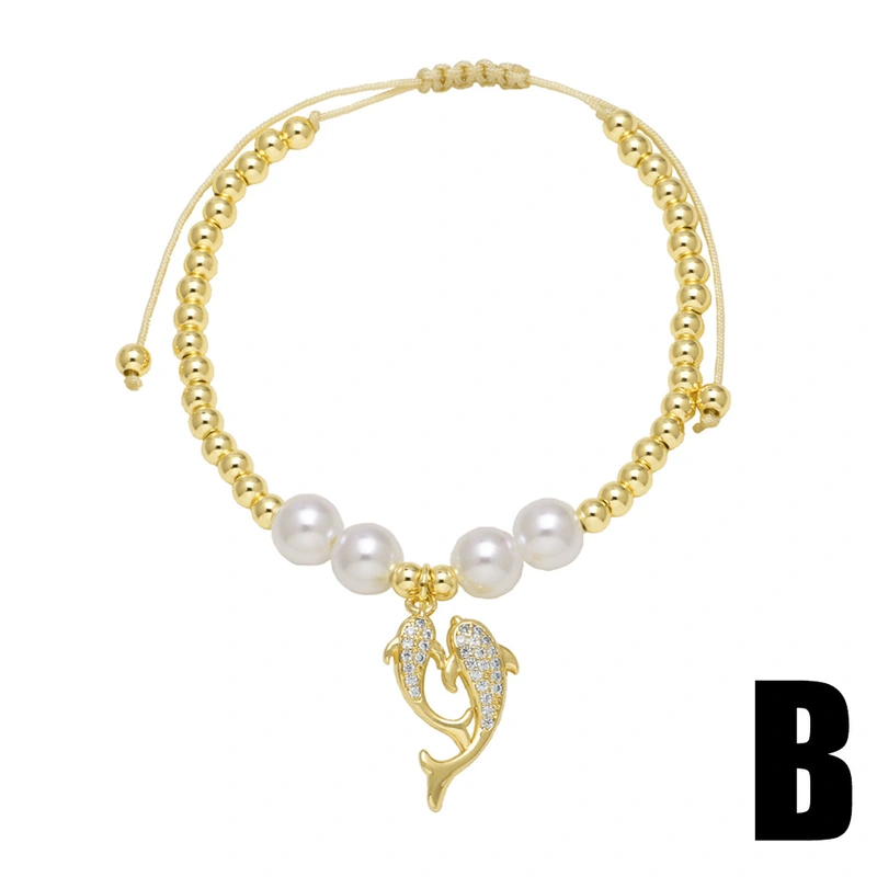 سوار نسائي أوروبي وأمريكي من خرز النحاس مكون من 26 حرفًا إنجليزيًا، سوار مرن من اللؤلؤ، سوار عصري على شكل تاج، brf80