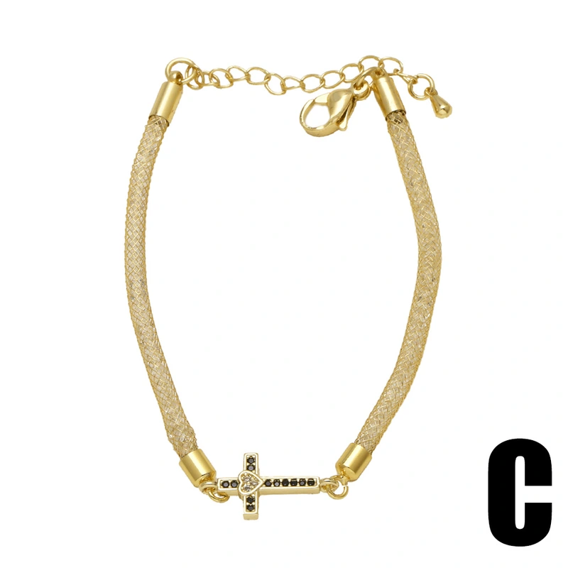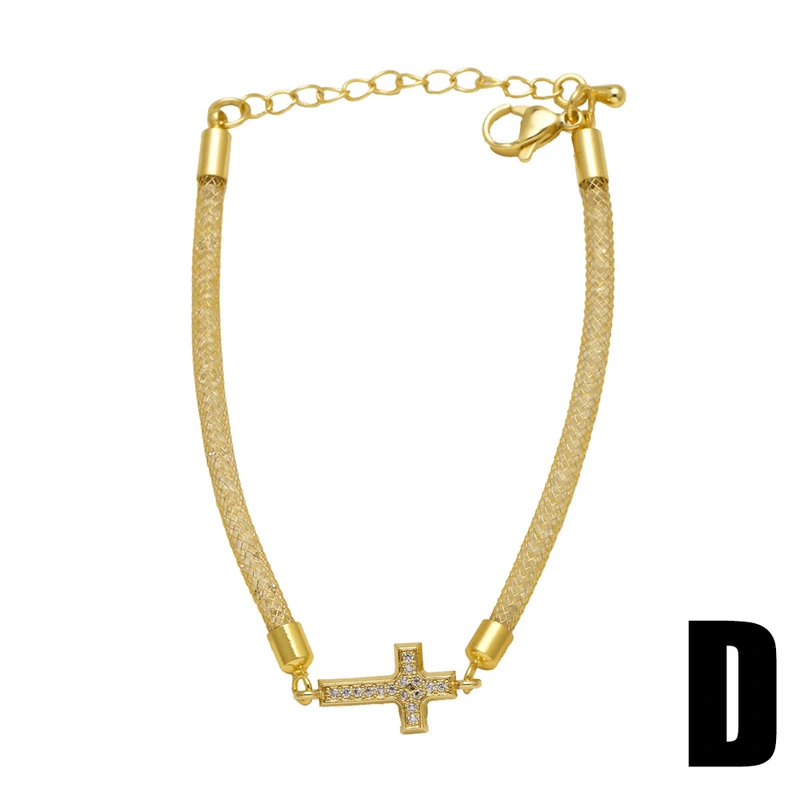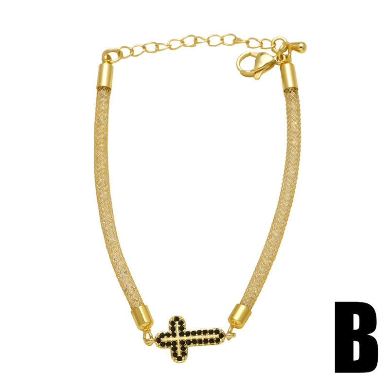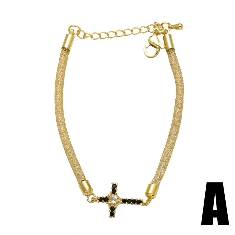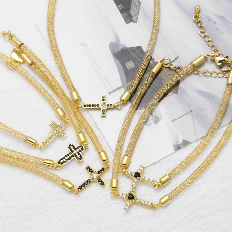 كقطعة مجوهرات جديدة مطلية بالنحاس عيار 18 قيراطًا مرصعة بالزركون قلادة صليب سوار مجوهرات يدوية نسائية bre21