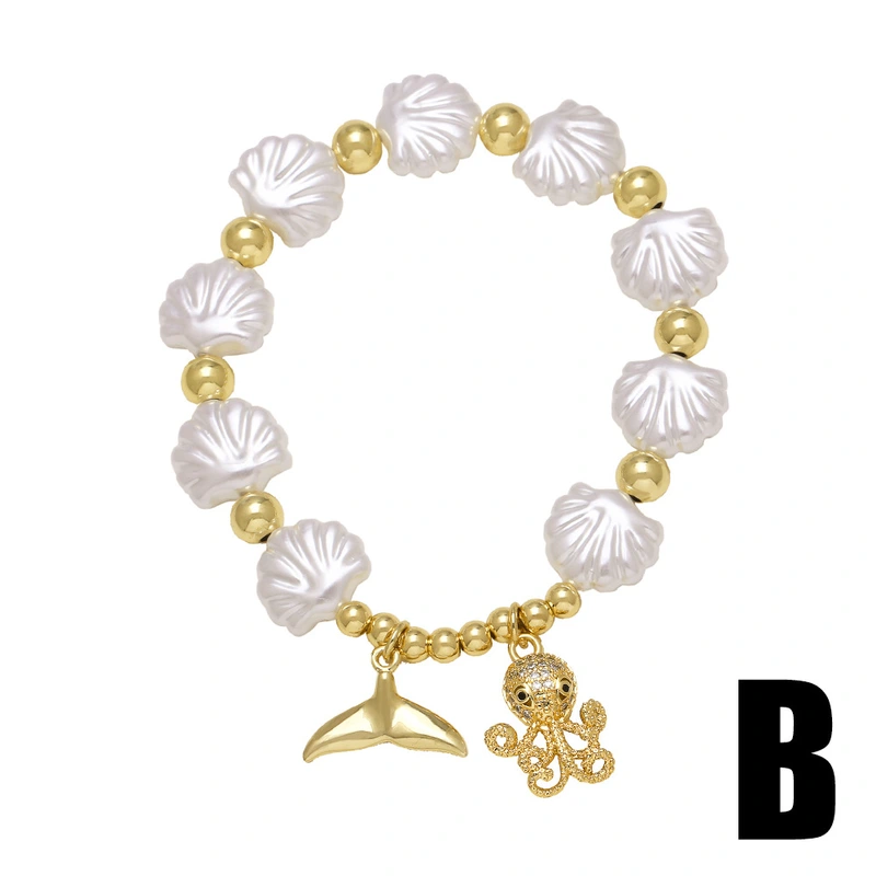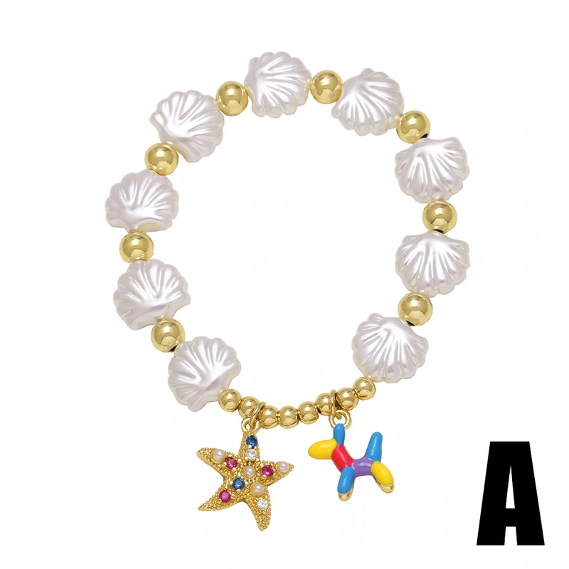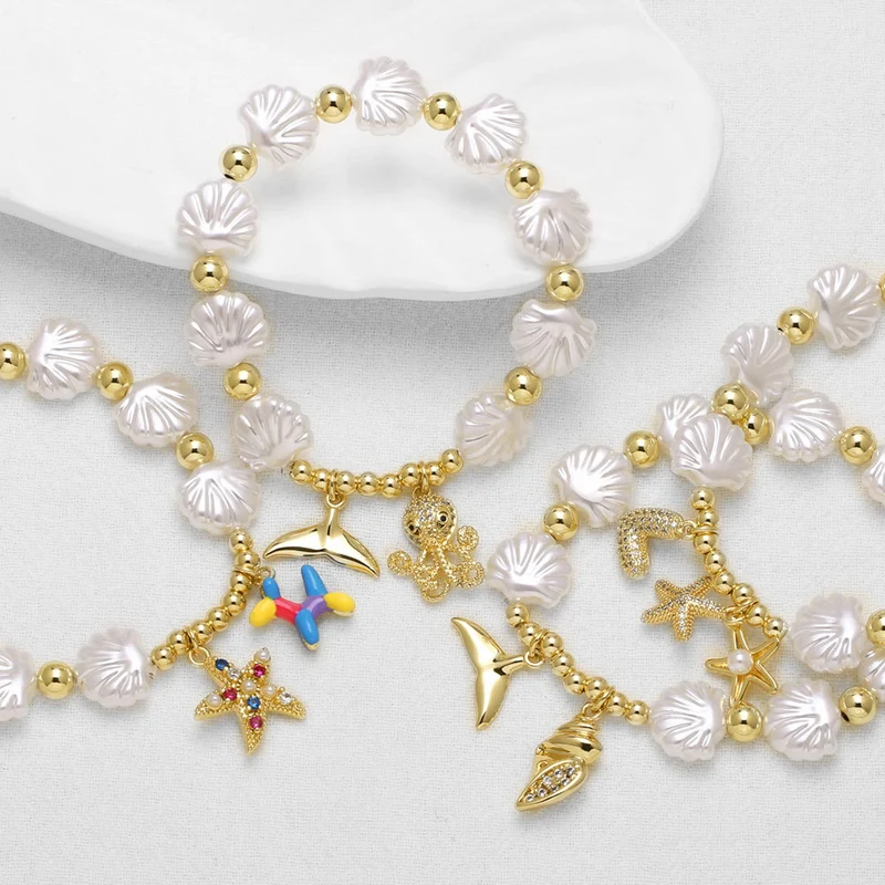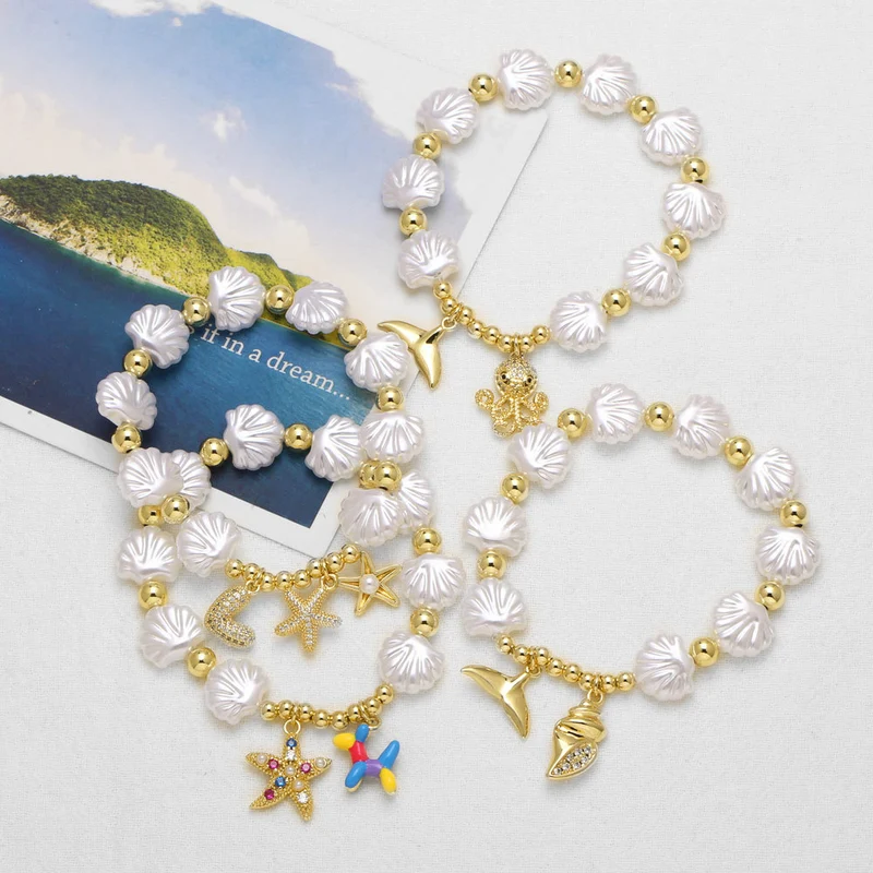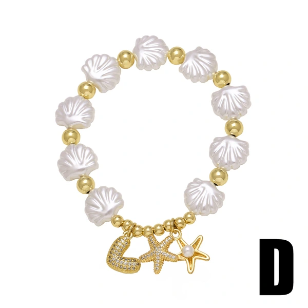 كقطعة مجوهرات رائجة البيع على شكل محيط من اللؤلؤ على شكل صدفة نجم البحر سوار مطلي بالذهب مجوهرات يدوية brk05