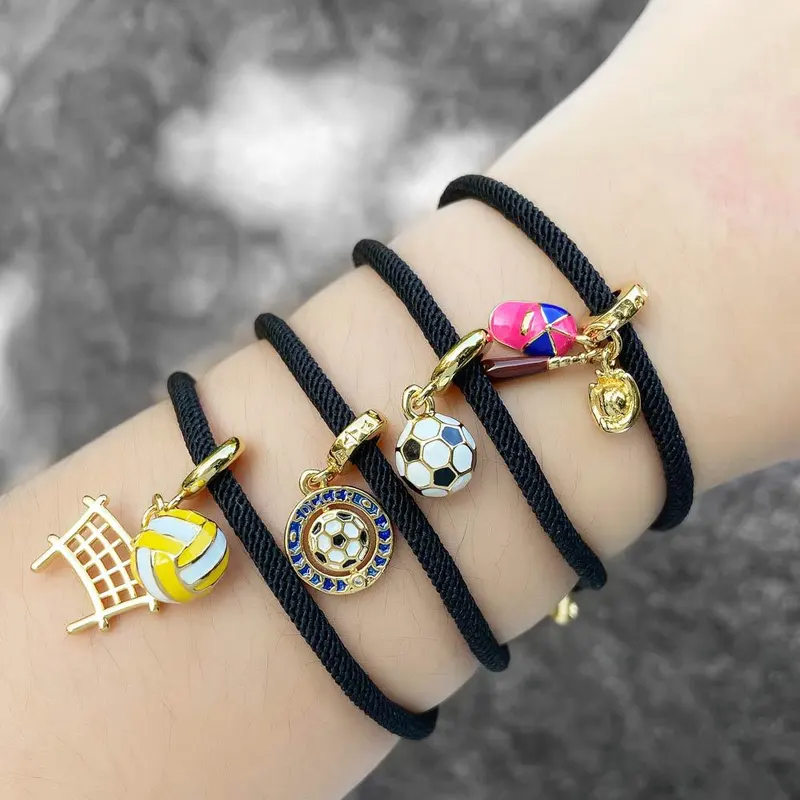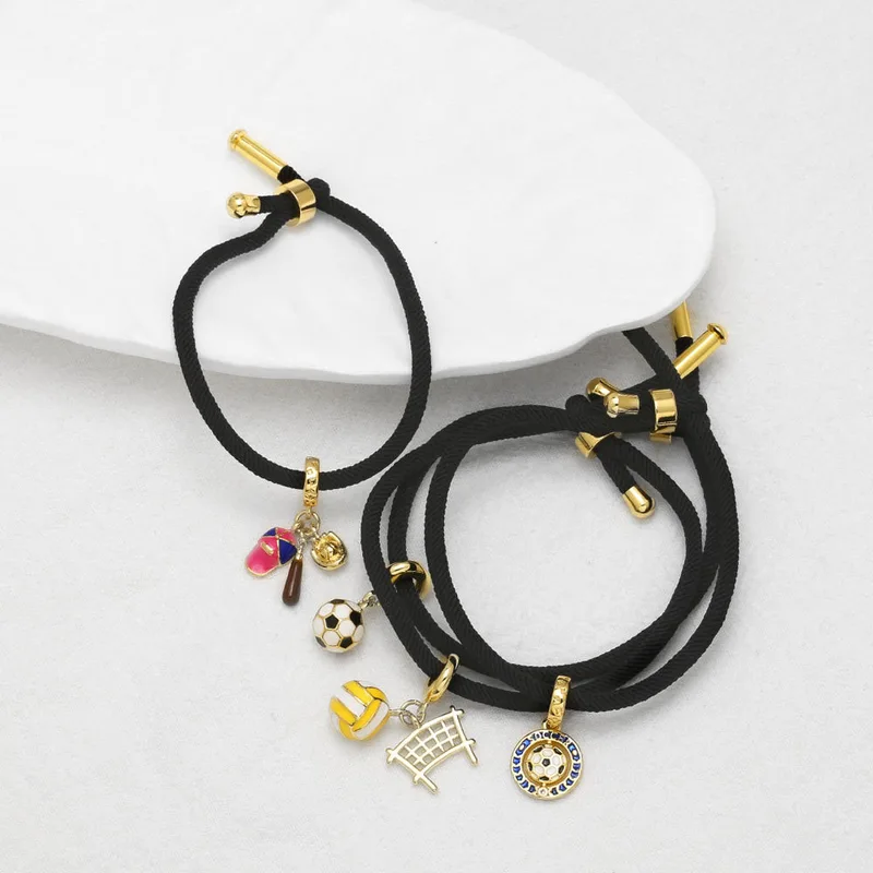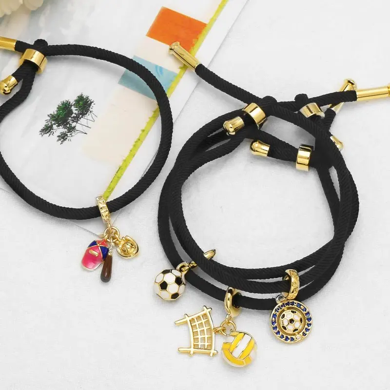كقطعة مجوهرات رائجة البيع قلادة كرة القدم مطلية بالذهب الأسود سوار قابل للتعديل سوار brk91