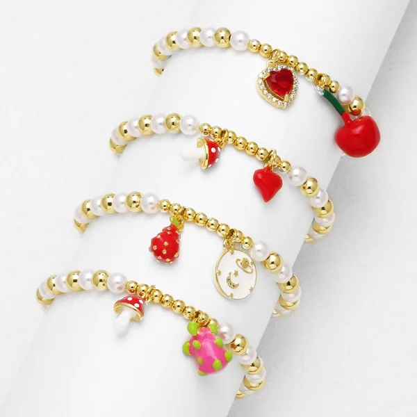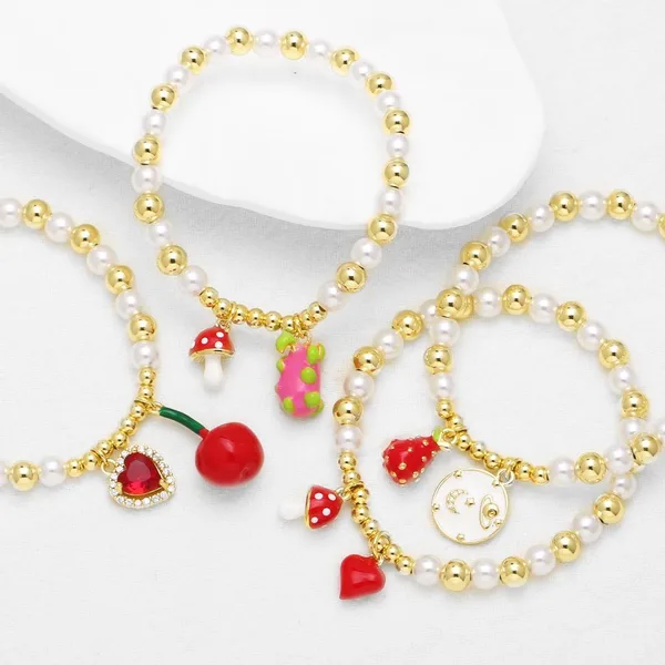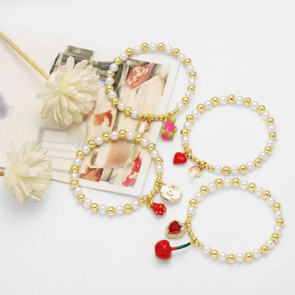كقطعة مجوهرات من اللؤلؤ ومجوهرات يدوية مطلية بالذهب على شكل فاكهة وفراولة وسوار للنساء brm74