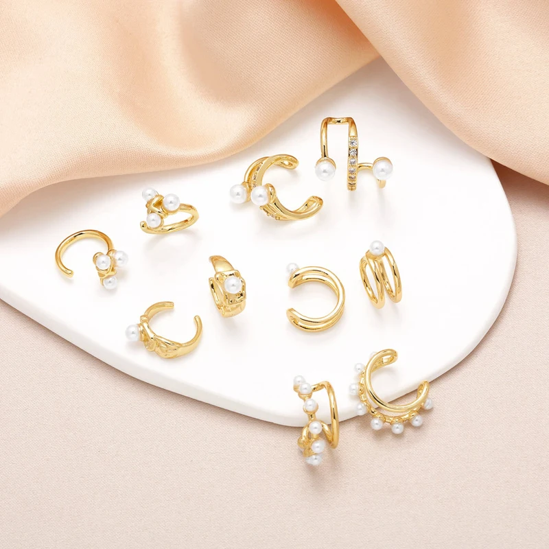 كما المجوهرات الجديدة الساخنة بيع اللؤلؤ مزدوجة الأذن العظام كليب أقراط مطلية بالذهب الزركون أقراط الإناث era375
