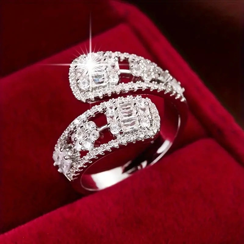 مبيعات المصنع مباشرة خاتم مفتوح رائج البيع للنساء مع خاتم الزركون المرصع الدقيق القابل للتعديل بأسلوب أنيق وعصري