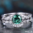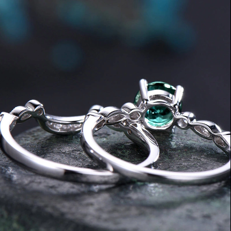 مجموعة خواتم أوروبية وأمريكية شائعة بسيطة ومتعددة الاستخدامات من الزمرد الصناعي للنساء، خاتم مطلي بالنحاس والفضة مرصع بالزركون