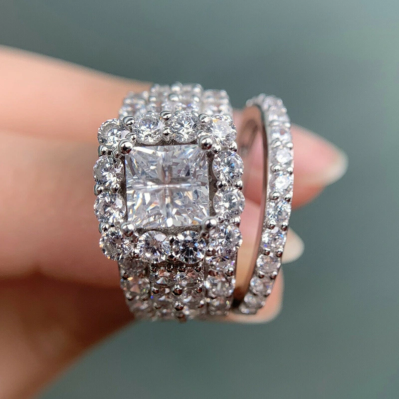 خاتم الأميرة المربع الجديد الأكثر مبيعًا على الطراز الأوروبي والأمريكي المرصع بالزركون مجوهرات نسائية خاتم خطوبة وزواج