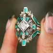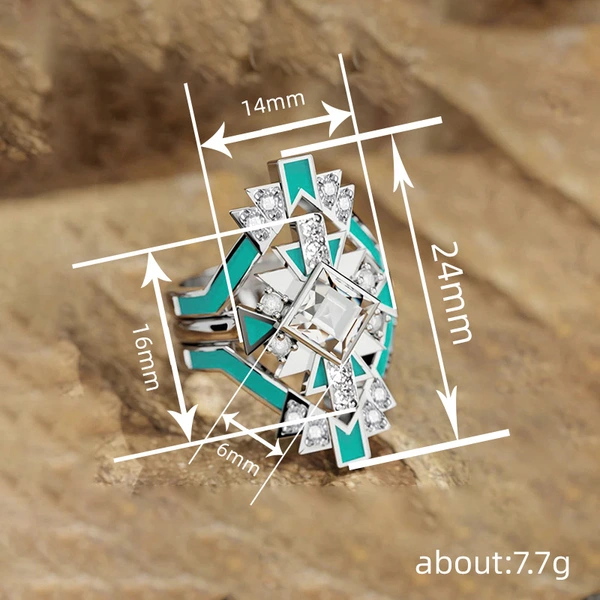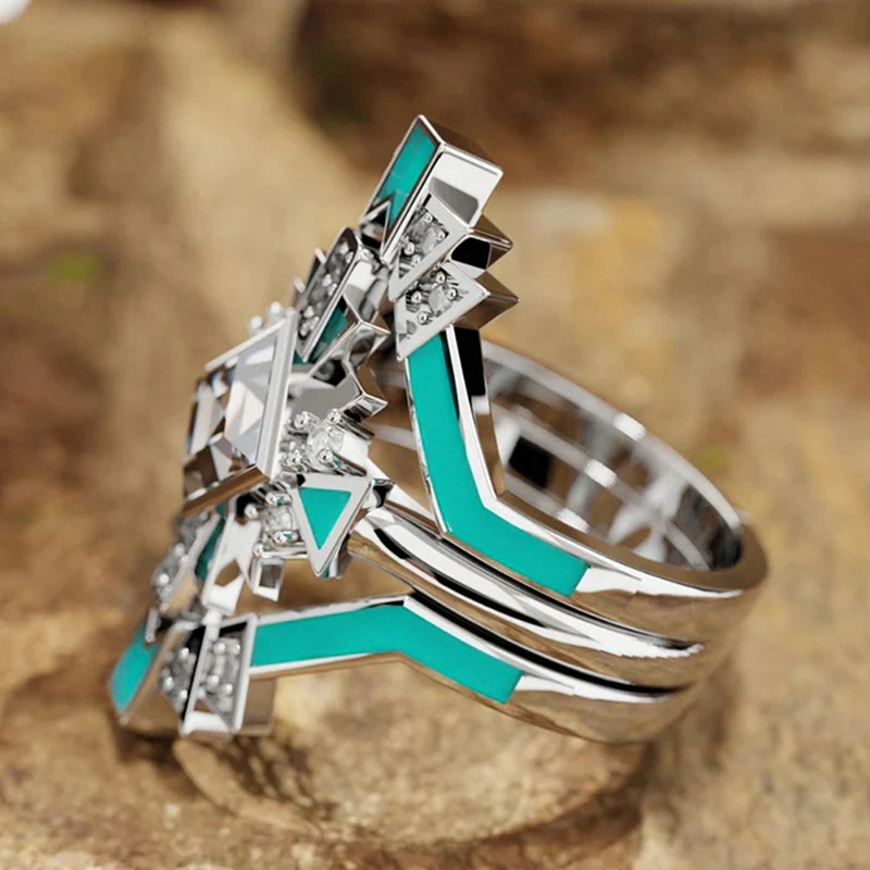 مجموعة خواتم جديدة من ثلاث قطع من شياوهونغشو للنساء، تصميم، تكنولوجيا المستقبل، خاتم مربع، لوحة زيتية، مشاهير الإنترنت