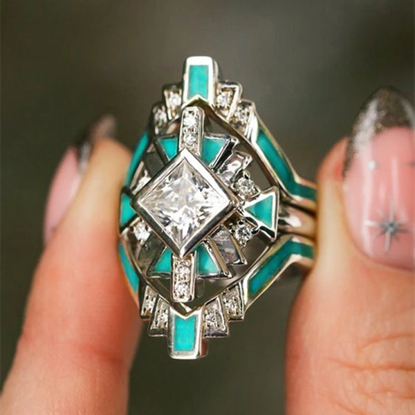 خاتم الأميرة المربع الجديد الأكثر مبيعًا على الطراز الأوروبي والأمريكي المرصع بالزركون مجوهرات نسائية خاتم خطوبة وزواج