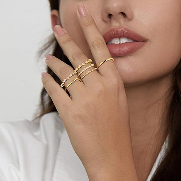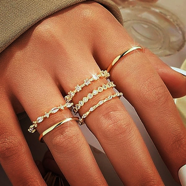 مجموعة خواتم فرنسية قابلة للتكديس للنساء، مجموعة خواتم هندسية، مجموعة من 6 قطع، مبيعات مباشرة من المصنع، مجوهرات أنيقة
