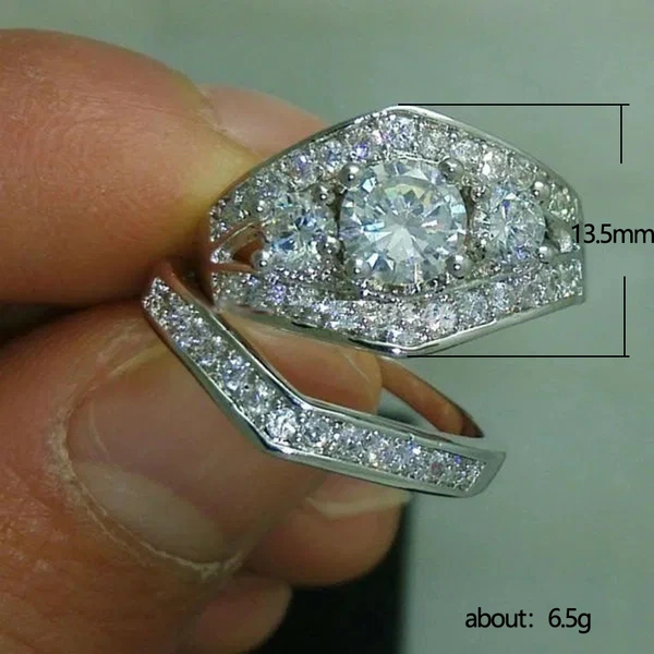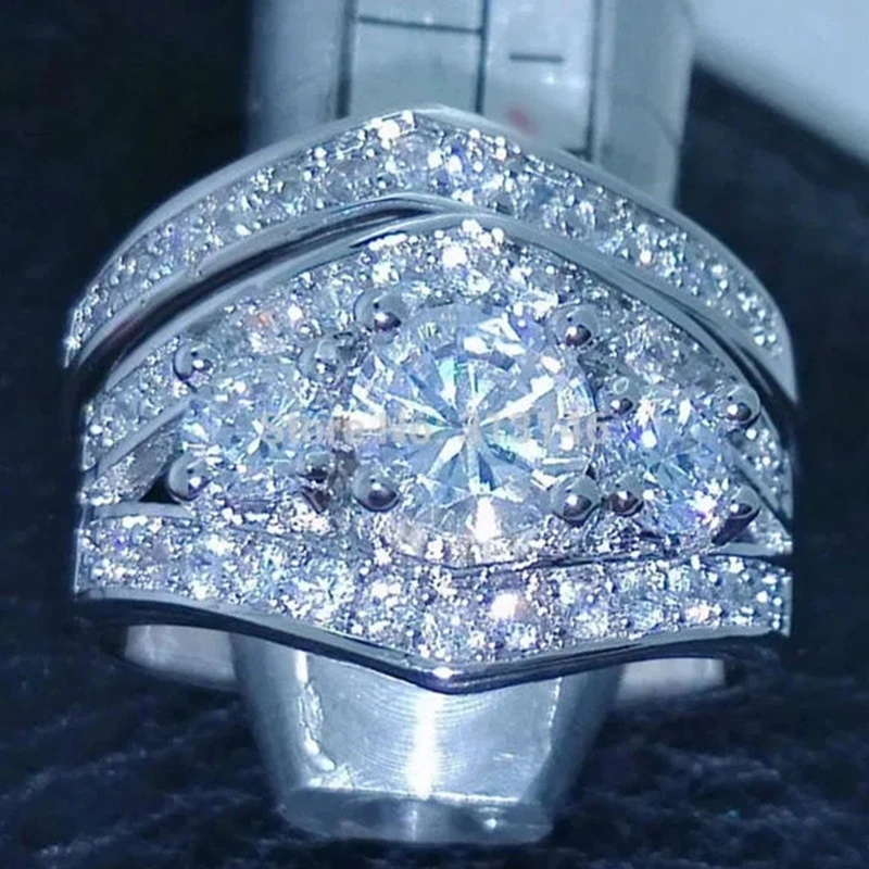 مجموعة خواتم من قطعتين من الزركون الدائري الفضي الأكثر مبيعًا خاتم بسيط عناصر أزياء إبداعية