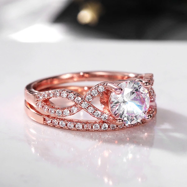 مجموعة خواتم نسائية بتصميم جديد مرصعة بالزركون من الذهب الوردي، متخصصة في بيع المجوهرات بالجملة