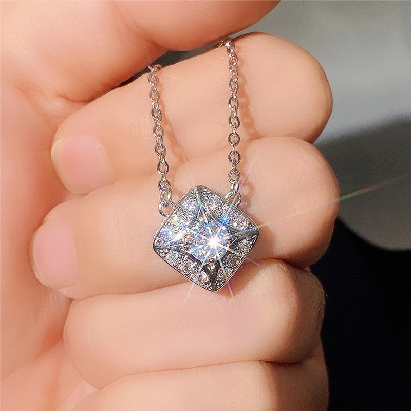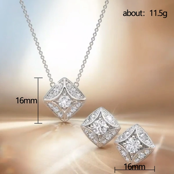 مجموعة مجوهرات ساخنة بسيطة هندسية الماس الزركون أقراط وقلادة للنساء بالجملة