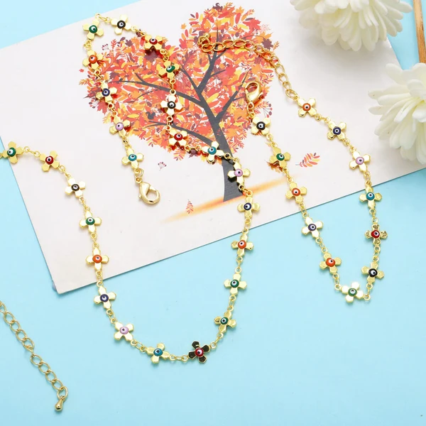 مجموعة مجوهرات شخصية رائجة البيع لون قطرة زيت عين الشيطان زهرة الترقوة قلادة سوار أنثى nkb532