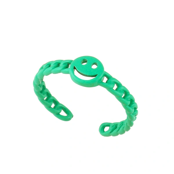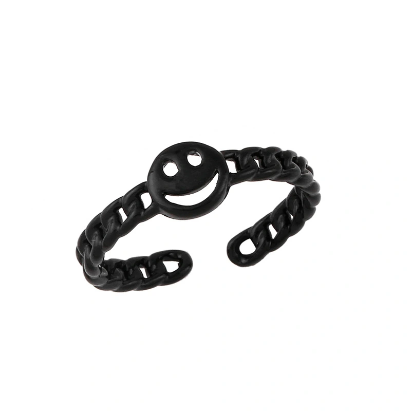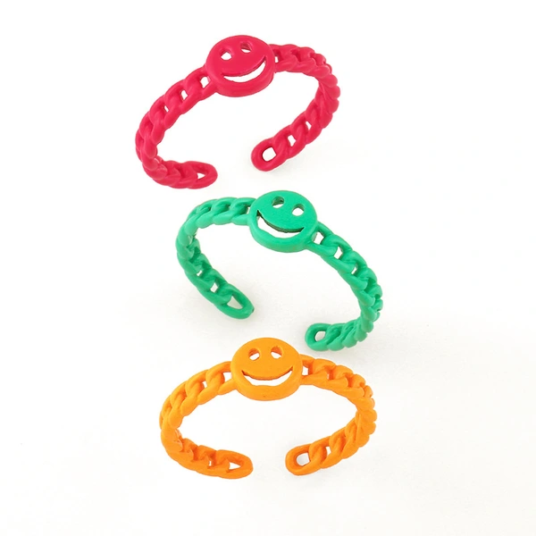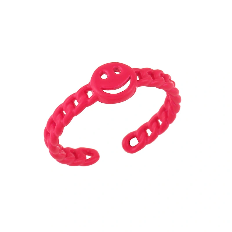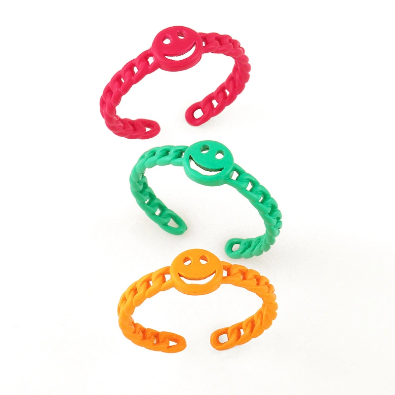 مجوهرات أوروبية وأمريكية صيفية بسلسلة كوبية، خاتم وجه مبتسم، لون ماكارون، خاتم مفتوح rik94