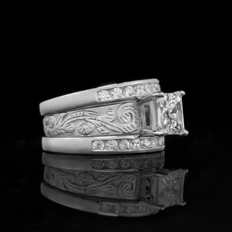 خاتم الأميرة المربع الجديد الأكثر مبيعًا على الطراز الأوروبي والأمريكي المرصع بالزركون مجوهرات نسائية خاتم خطوبة وزواج