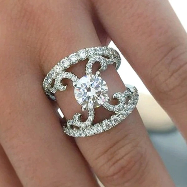 مجوهرات الأكثر مبيعًا على شكل قصر ألماس هندسي للنساء خاتم أوروبي وأمريكية شخصية مجوهرات متعددة الاستخدامات