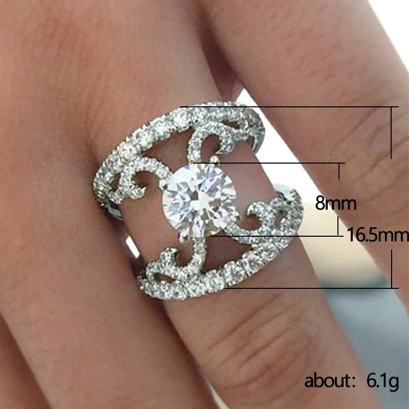 خاتم زفاف كلاسيكي مرصع بالزركون بستة مخالب على الطراز الأوروبي والأمريكي، خاتم فاخر خفيف الوزن، مناسب لجميع المناسبات، مرصع بالزركون بستة مخالب على الطراز الأوروبي والأمريكي