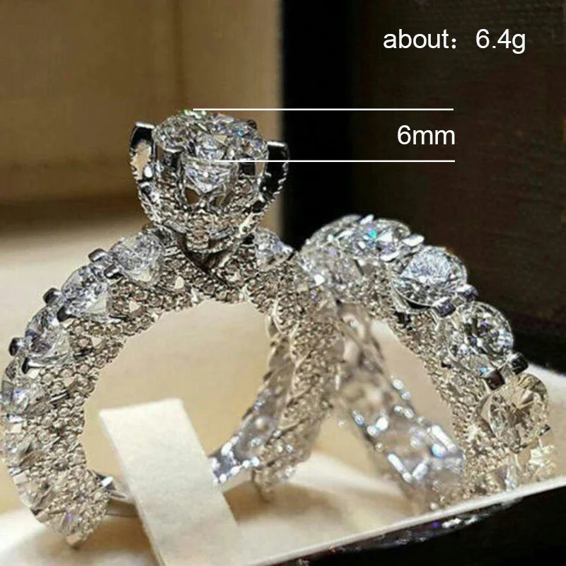 مجوهرات جديدة رائجة البيع أوروبية وأمريكية نسائية مستديرة مرصعة بالألماس خواتم زوجين عصرية مليئة بخواتم الماس