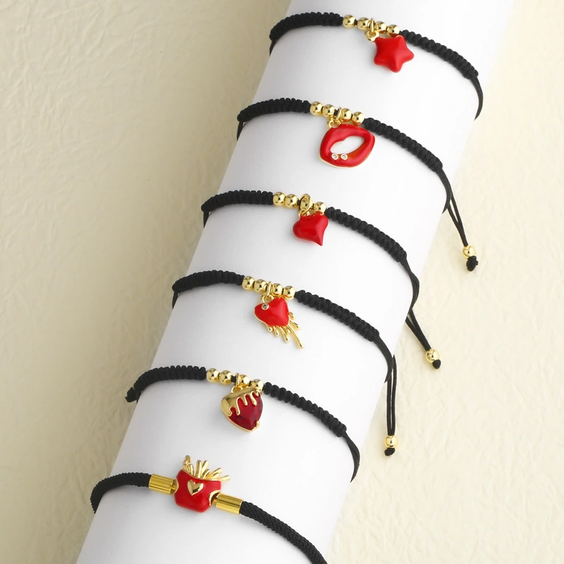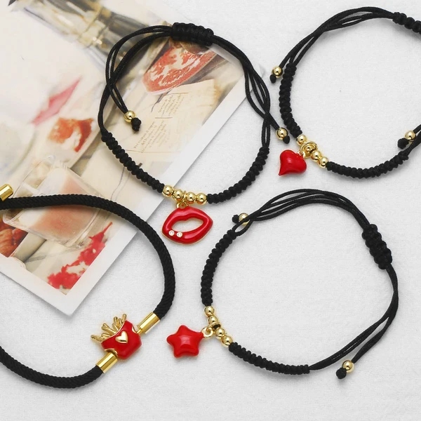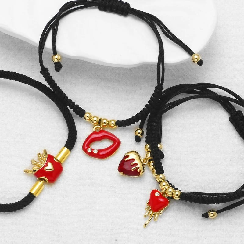 مجوهرات جديدة مصنوعة يدويًا بحبل أسود مقطر بزيت الشفاه وسوار معلق بحبل brc60