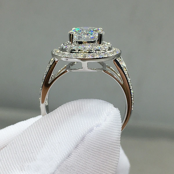 خاتم كلاسيكي مرصع بأحجار الزركون المقلد بأربعة مخالب للنساء، خاتم ذراع ملتوي مزدوج اللون، خاتم خطوبة وزواج للنساء