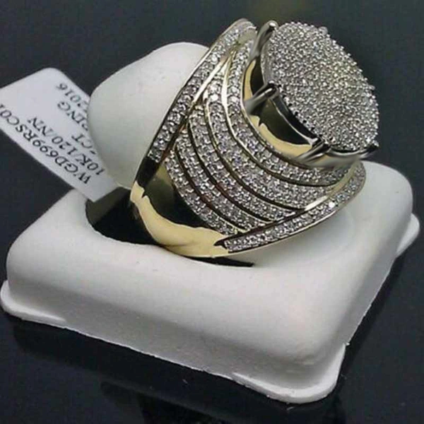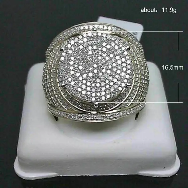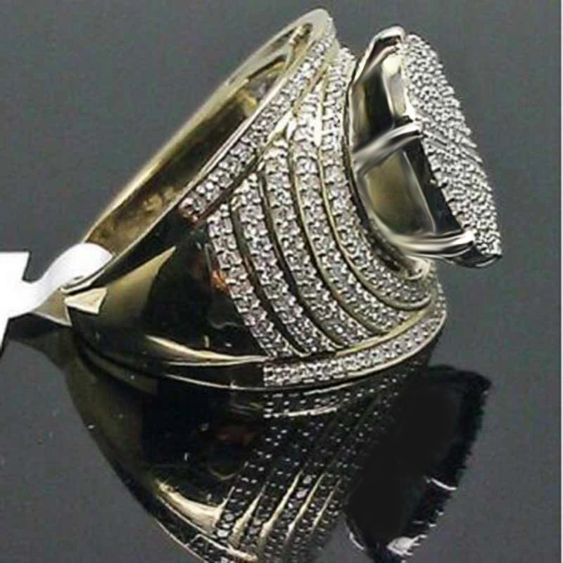مجوهرات رائجة البيع للتجارة الإلكترونية، خاتم مطلي بالذهب للرجال الأوروبي والأمريكي، مليء بالألماس، خاتم رجالي كبير ومهيمن