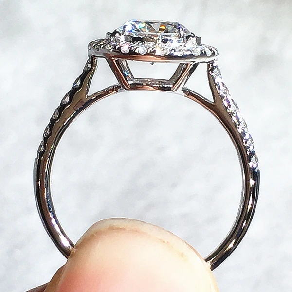 خاتم كلاسيكي مرصع بأحجار الزركون المقلد بأربعة مخالب للنساء، خاتم ذراع ملتوي مزدوج اللون، خاتم خطوبة وزواج للنساء