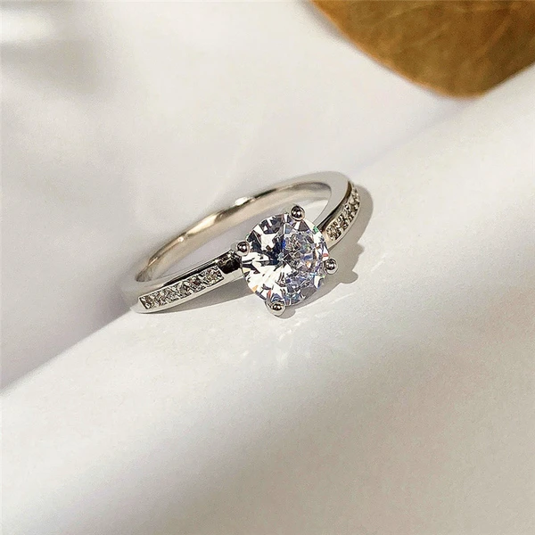 خاتم زفاف كلاسيكي مرصع بالزركون بستة مخالب على الطراز الأوروبي والأمريكي، خاتم فاخر خفيف الوزن، مناسب لجميع المناسبات، مرصع بالزركون بستة مخالب على الطراز الأوروبي والأمريكي