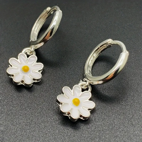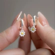 أقراط على شكل قلب يابانية وكورية، أقراط مرصعة بأحجار صغيرة ثنائية اللون على شكل عباد الشمس وعباد الشمس، أقراط بتصميم مجوف أنيق