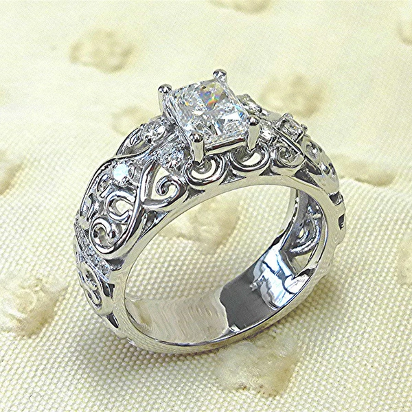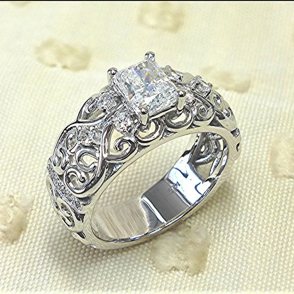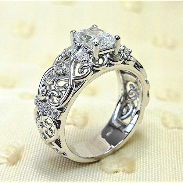 خاتم الأميرة المربع الجديد الأكثر مبيعًا على الطراز الأوروبي والأمريكي المرصع بالزركون مجوهرات نسائية خاتم خطوبة وزواج