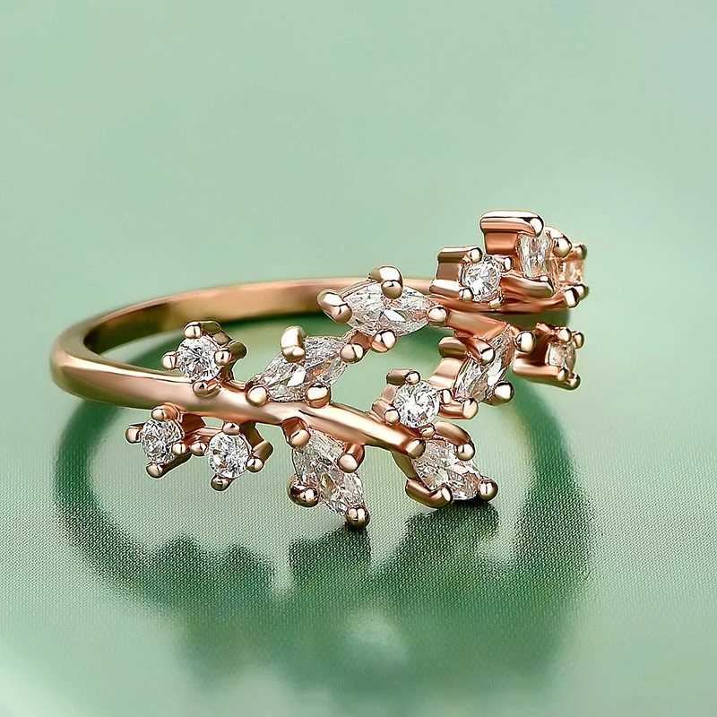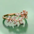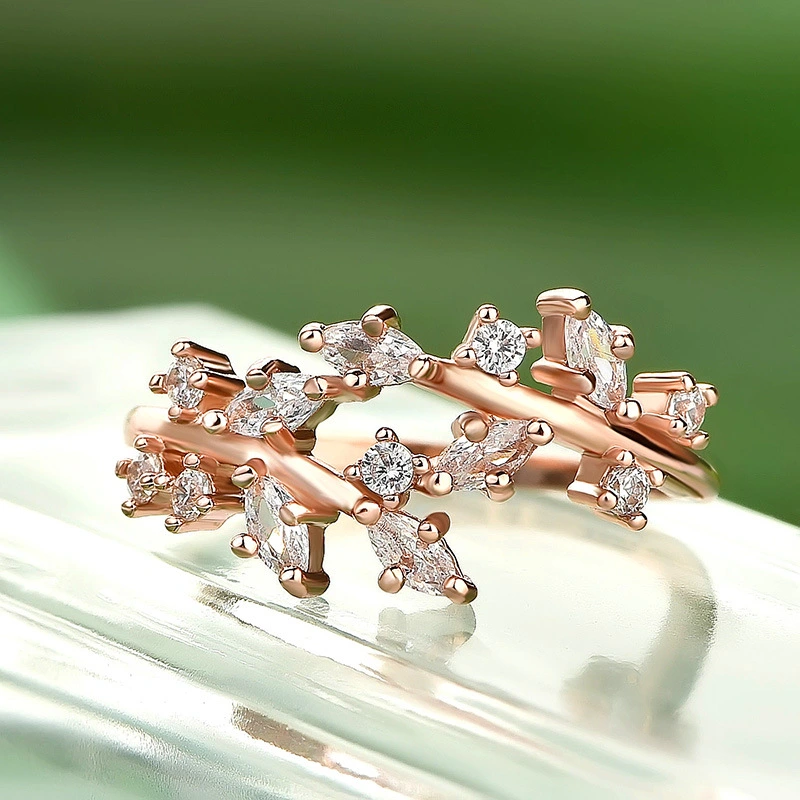 مجوهرات نحاسية ذهبية وردية عصرية جديدة، أغصان شجر متشابكة حول خاتم إبداعي مرصع بالزركون الدقيق، إكسسوارات الخاتم