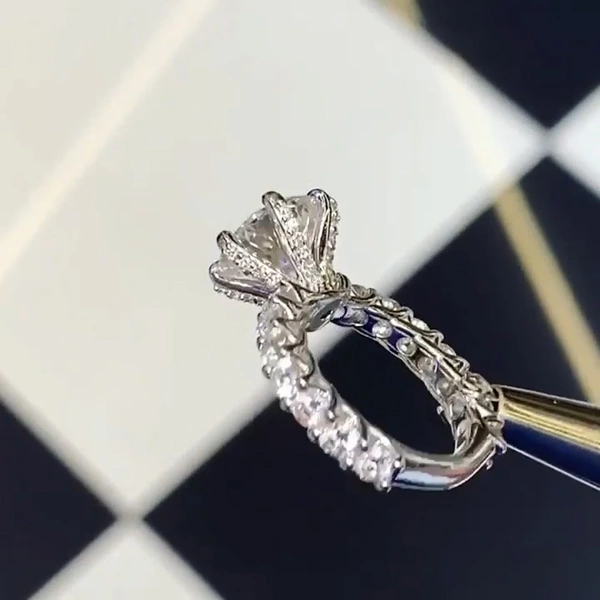 مجوهرات يدوية رائجة البيع مطلية بالبلاتين خاتم الزركون ذو الستة مخالب مجوهرات خاتم خطوبة زفاف على شكل نجمة ساطعة