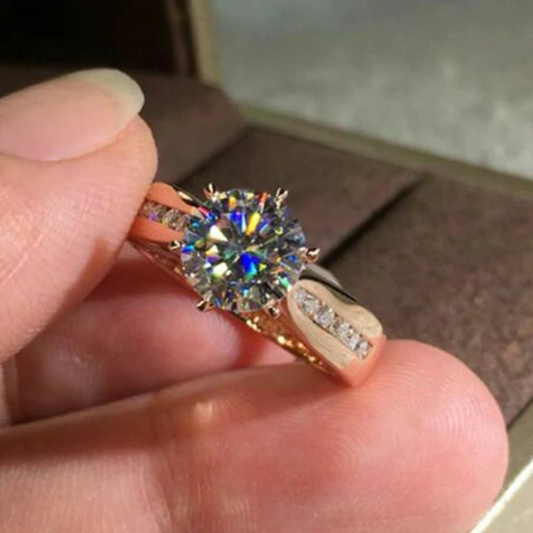 مجوهرات يد جديدة للتجارة الإلكترونية مطلية بالذهب الوردي الكلاسيكي بستة مخالب من الزركون خاتم زفاف نسائي