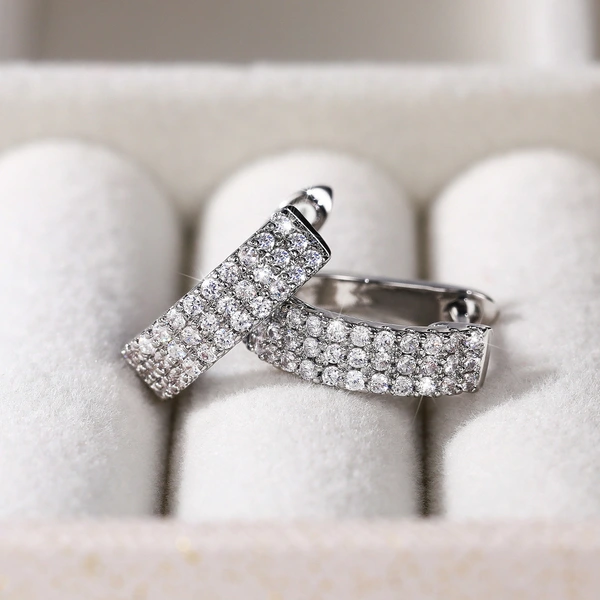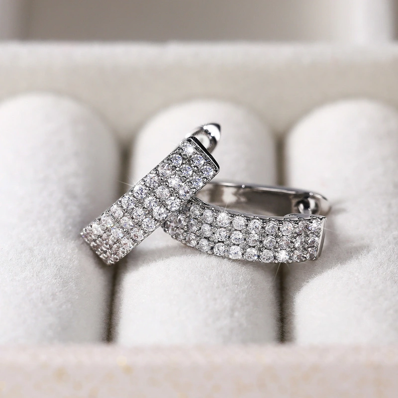 مصدر أقراط هندسية كلاسيكية على شكل حرف U للنساء مليئة بالألماس أقراط الزركون الرائعة المصنعة بالجملة