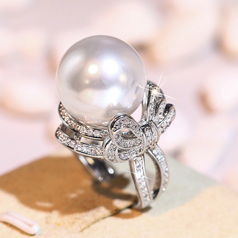 مصدر الشركة المصنعة ضوء نمط فاخر نمط شانيل خاتم للنساء تقليد اللؤلؤ تصميم القوس المجوهرات العصرية والأنيقة