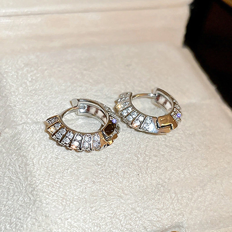 أقراط كورية أنيقة ذات طابع كلاسيكي، أقراط بيضاوية مرصعة بالزركون اللامع، متوفرة للبيع مباشرة من المصنع