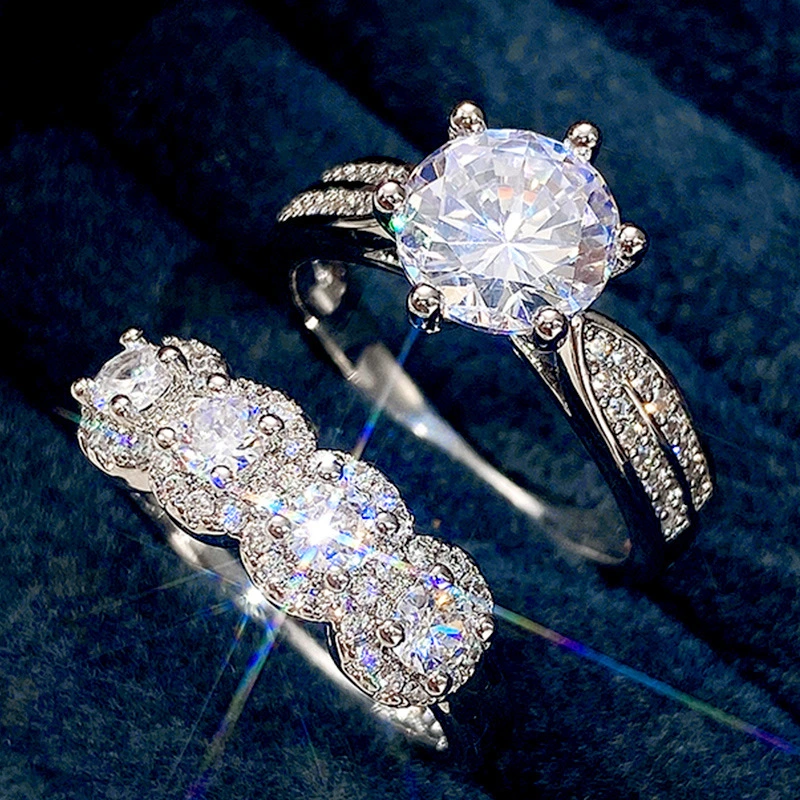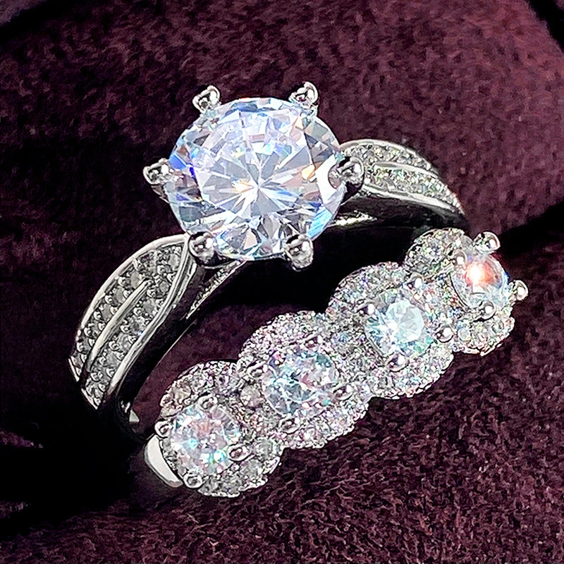 خاتم زفاف كلاسيكي مرصع بالزركون بستة مخالب على الطراز الأوروبي والأمريكي، خاتم فاخر خفيف الوزن، مناسب لجميع المناسبات، مرصع بالزركون بستة مخالب على الطراز الأوروبي والأمريكي