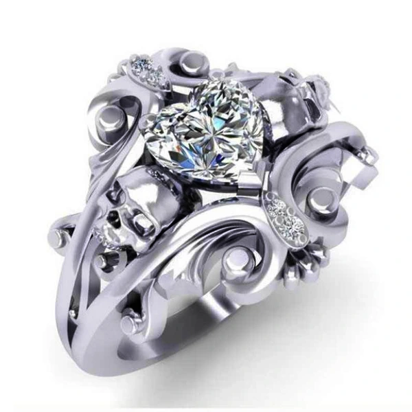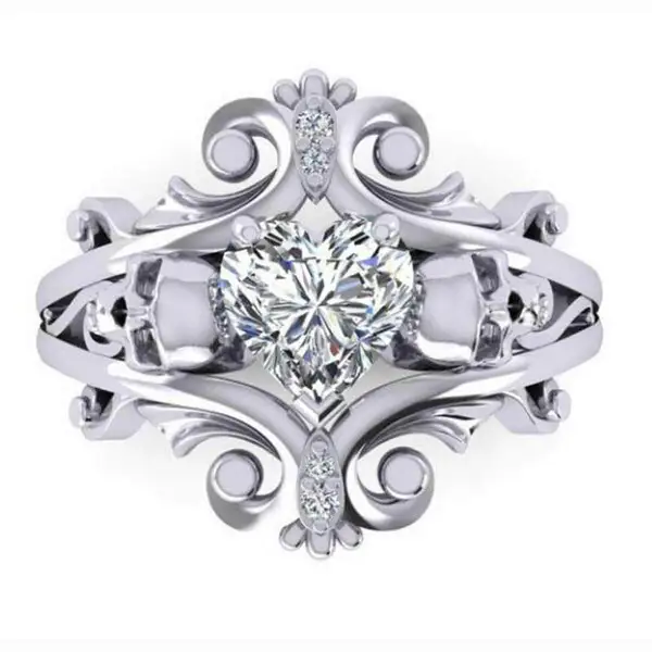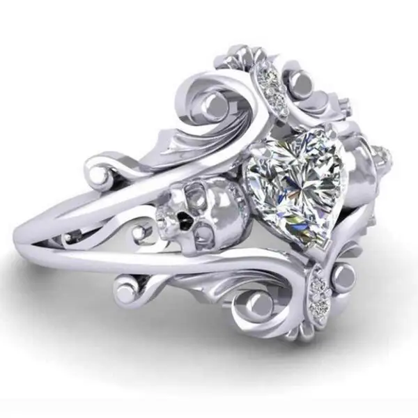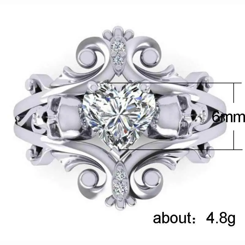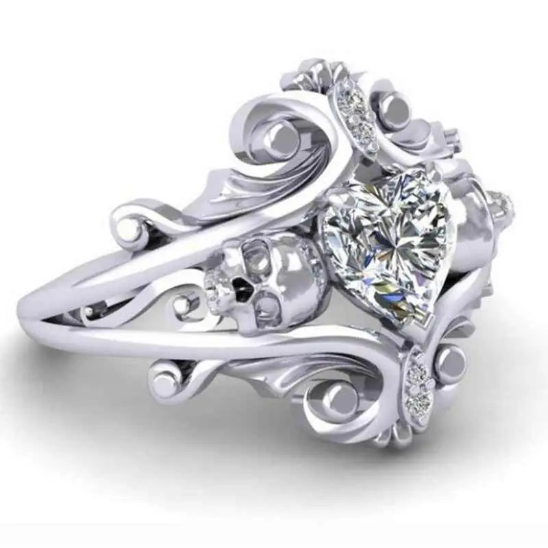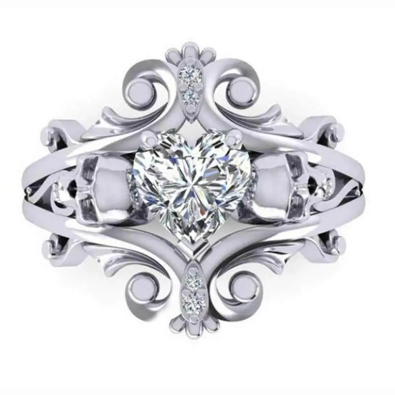 مصدر المجوهرات الأكثر مبيعًا خاتم جمجمة شخصية بانك على شكل قلب خاتم الزركون بالجملة