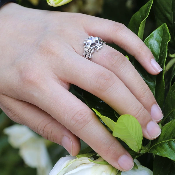 خاتم زهرة ميمونة محفورة بشكل كلاسيكي بتصميم عريض من خاتم مياو على الطراز العرقي من يونان، مجوهرات للرجال والنساء