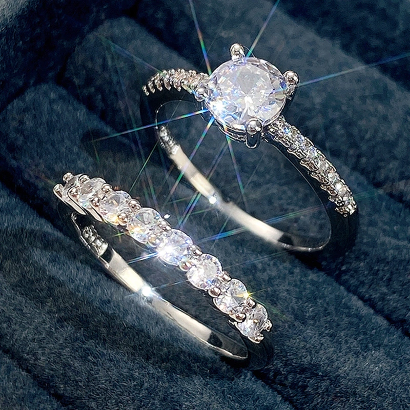 مصدر مصنع الجملة أزياء بسيطة aaa الزركون اثنين من قطعة خاتم الإناث شعبية