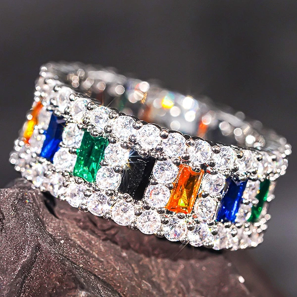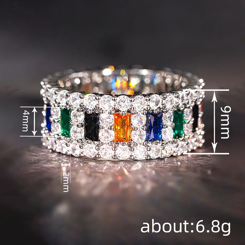 مصنعو خواتم جديدة بالجملة للنساء، مجوهرات الزركون الهندسية المربعة الملونة، أسلوب المشاهير على الإنترنت