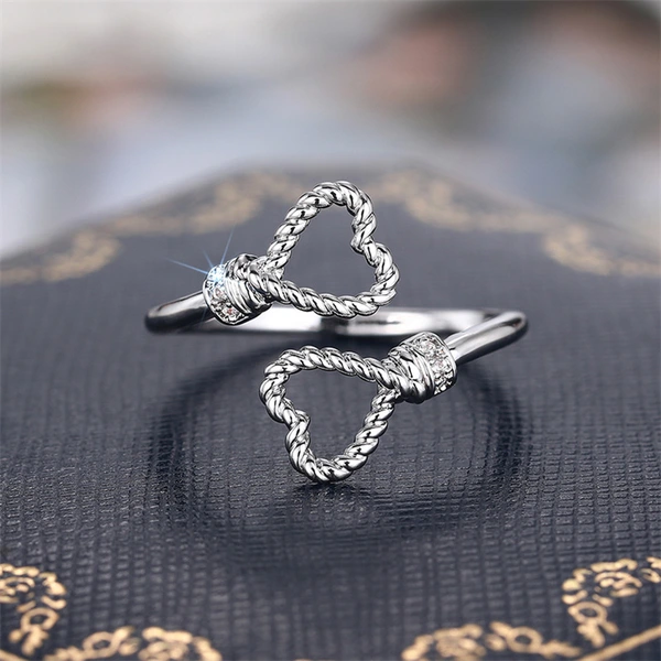 مصنعين الجملة خاتم الحب البسيط للنساء مع حلقة قابلة للتعديل من حبل القنب على شكل قلب الخوخ والمجوهرات