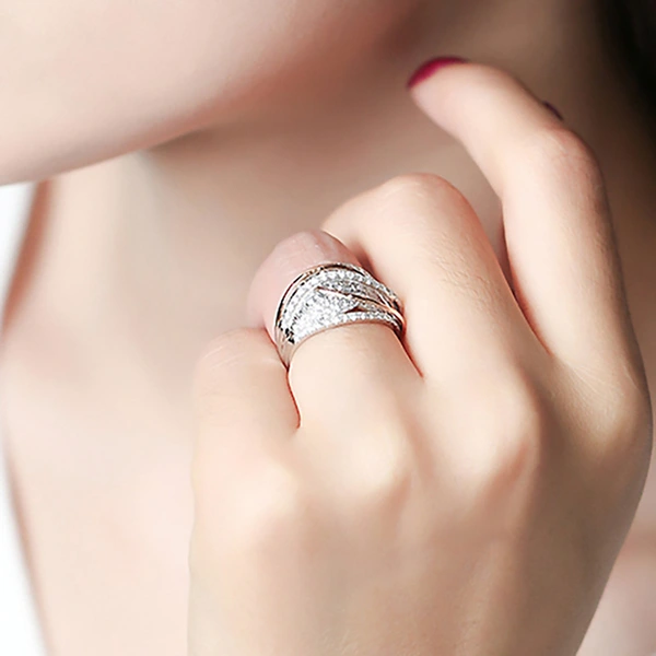 خاتم بتصميم أوروبي وأمريكي فاخر، خاتم عصري من الزركون على شكل عين الحصان، خاتم إصبع السبابة بتصميم مجوف متعدد الطبقات